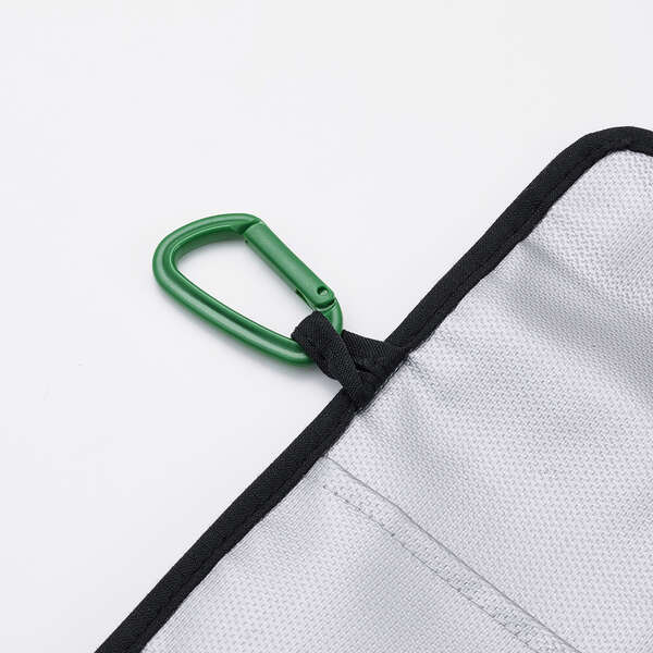 カラビナを付けてバッグに取り付けられるループ付き。収納物が燃えて熱くなった場合でも持ちやすい形状です。