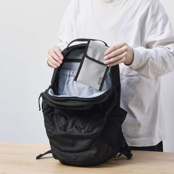 モバイルバッテリーなどのガジェット類が入るサイズで、持ち運びにも便利。飛行機内への持ち込みなどでバッグに入れるときも、すっきり収まります。