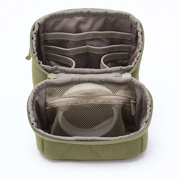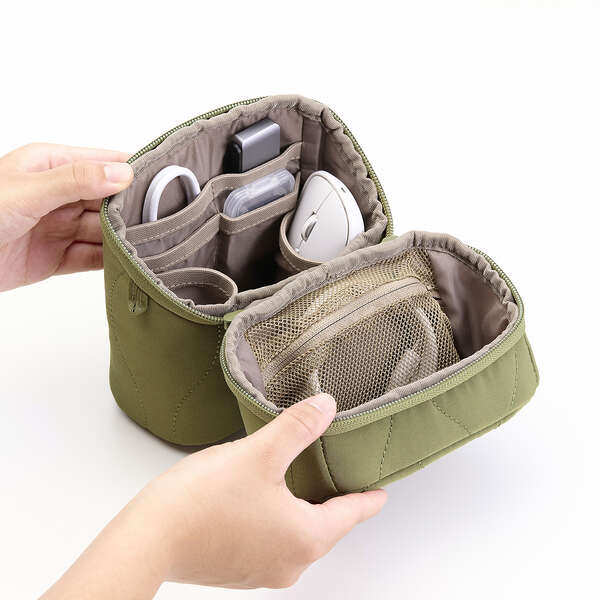 デスク周りの小物やガジェット、筆記用具などのワークツールをまとめてスッキリ収納!デスク上で道具入れとして使える、スタンドタイプのツールポーチです。上品な光沢のあるオニオンステッチのキルティング素材を採用した、大人カジュアルなデザインです。