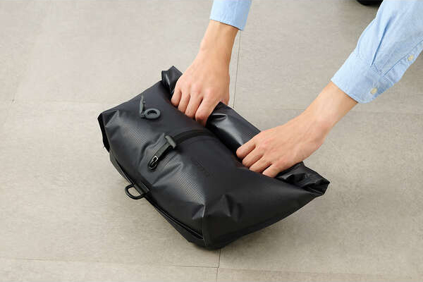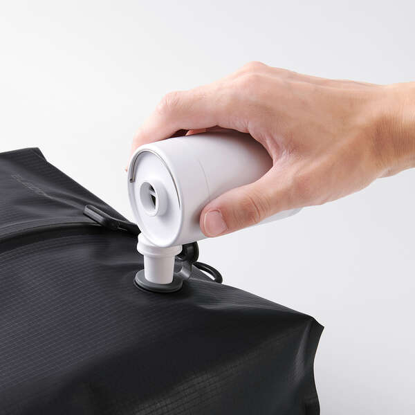 市販の電動エアーポンプなどを使うことで、より薄く圧縮可能。バッグやスーツケース内の無駄なスペースを節約し、より多くの荷物を収納できます。
