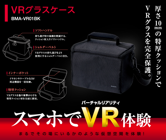 厚さ10mmの特厚クッション材を全面に採用し、VRグラスを傷や衝撃から守るVRグラスケースです。