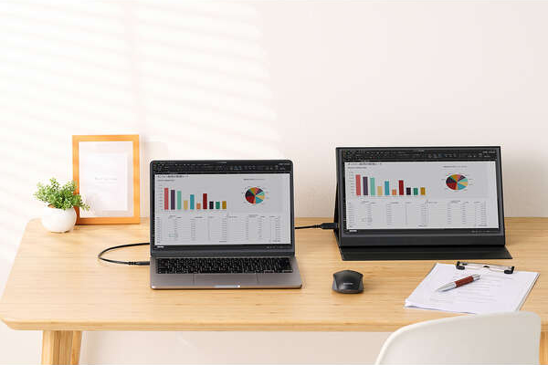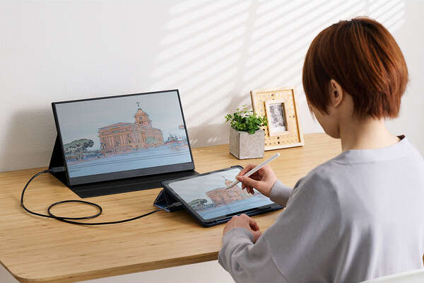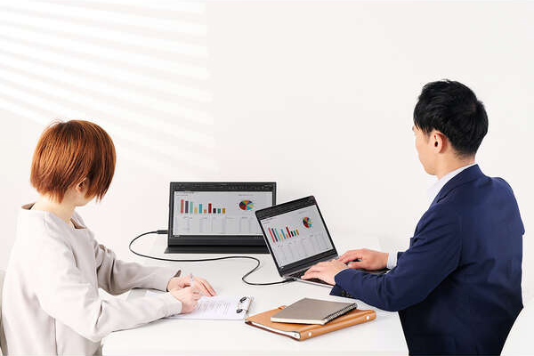 パソコンなどの映像をディスプレイに複製・拡張できます。大きい画面に表示することで作業効率が向上します。