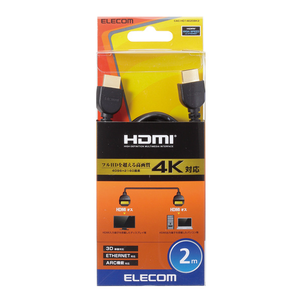 最大4K/30Hzの解像度に対応したHDMIケーブルです。High Speed HDMI Cable with Ethernet認証の取得により、安定した映像信号と音声信号の伝送を実現しています。
