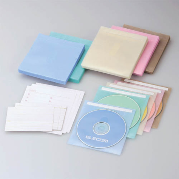 検索しやすいインデックス付き不織布CD・DVDケース(両面収納)/分類に便利な5色アソートセット