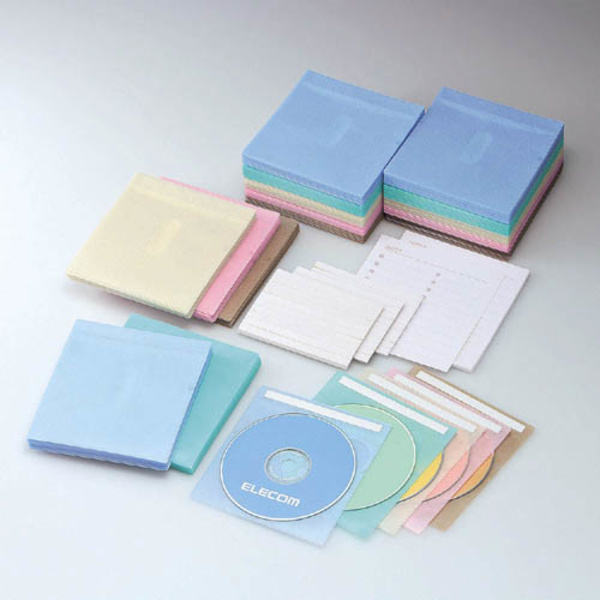 検索しやすいインデックス付き不織布CD・DVDケース(両面収納)/分類に便利な5色セット。たっぷり使えるお得な300枚入り。