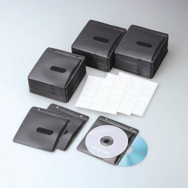 ファイリングできる2穴付き不織布CD・DVDケース(両面収納)。たっぷり使えるお得な300枚セット。