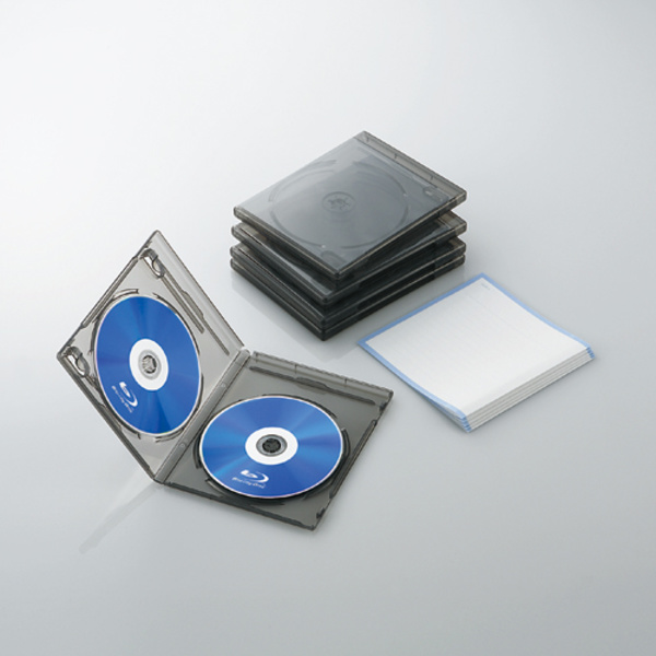 Blu-rayディスクをスッキリ収納!1つのケースに2枚のディスクが収納できるCD/DVD/Blu-rayディスクケース。分類に便利なジャケットカード付き。お得な5枚セットです。