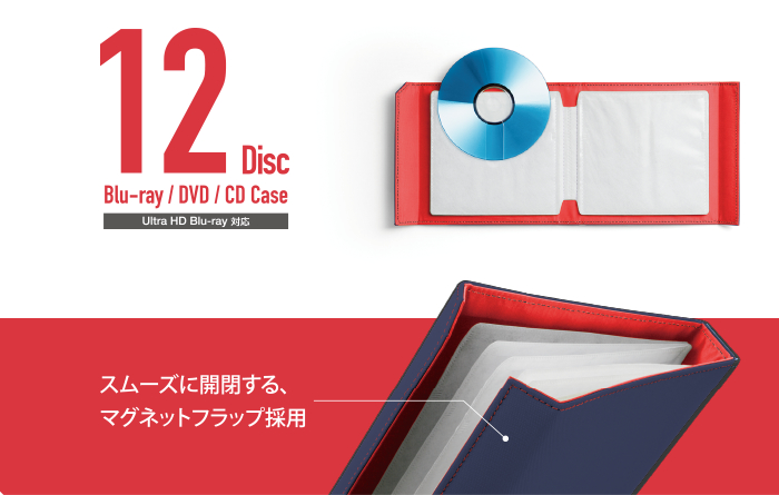 Blu-ray/Ultra HD Blu-ray/DVD/CD Discを分類して収納できる手帳型メディアケースです。