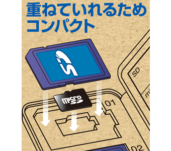 SDカードとmicroSDカードを重ねることでコンパクトに収納可能です。