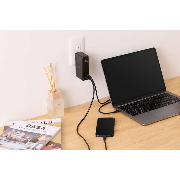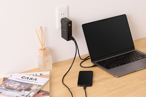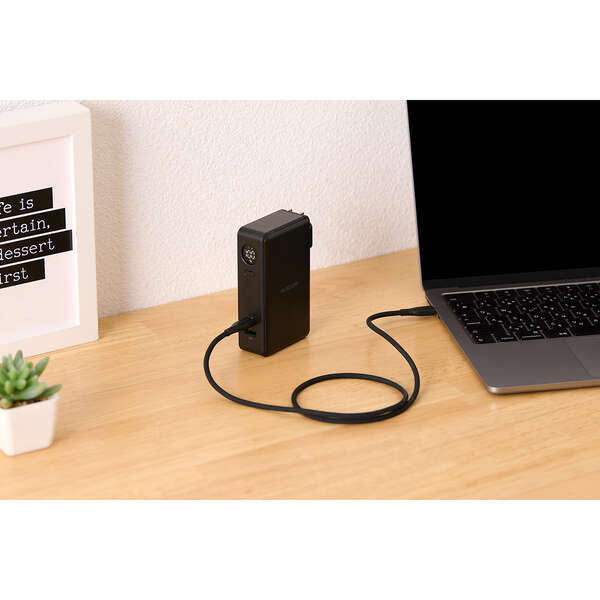 AC充電器として67Wの出力が可能。スマートフォンやタブレットはもちろん、MacBook Airなどのノートパソコンの充電にも使えます。