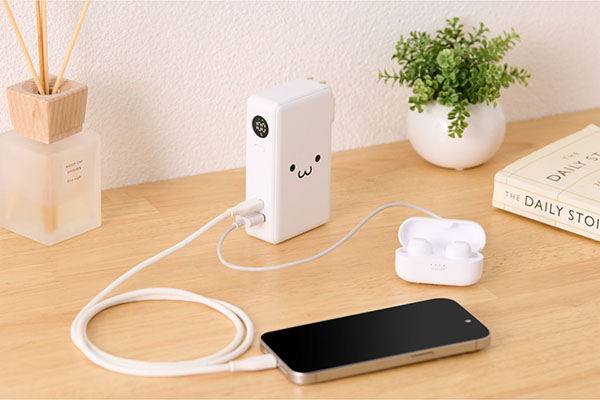 USB Type-C™ポート×1、USB-Aポート×1を搭載。スマートフォンとワイヤレスイヤホンなど、複数のデバイスを接続して一気に充電できます。