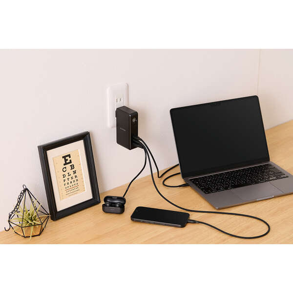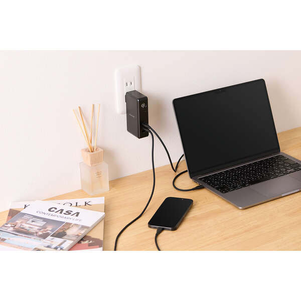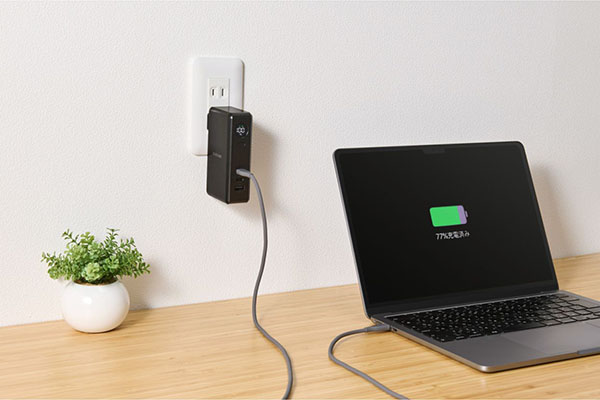 AC充電器として67Wの出力が可能。スマートフォンやタブレットはもちろん、MacBook Airなどのノートパソコンの充電にも使えます。