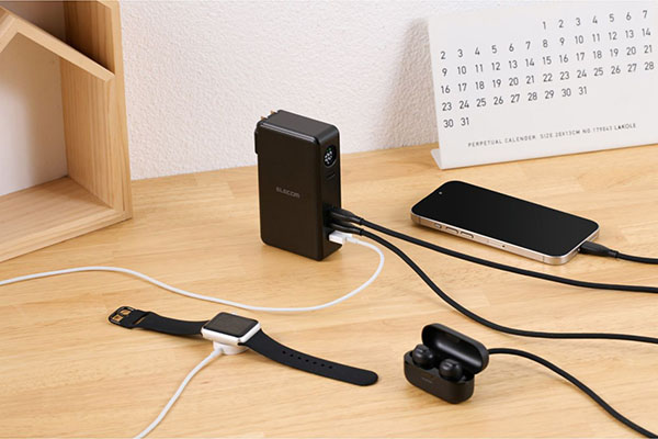 モバイルバッテリーとAC充電器をそれぞれ持ち運ぶ必要がなくなり、出張や旅行時の荷物を減らせます。