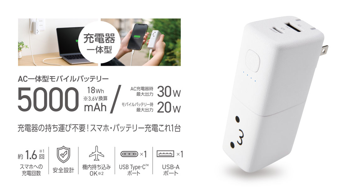 1台2役で使える、USB Power Delivery AC充電器一体型モバイルバッテリーです。