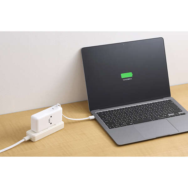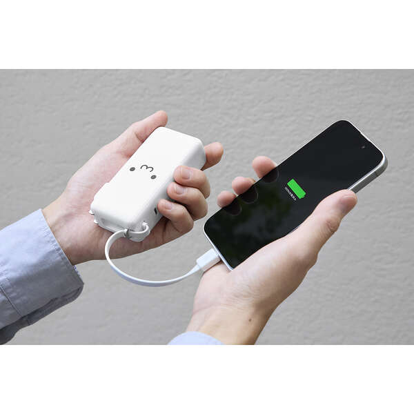 AC充電器としても使える2in1タイプのモバイルバッテリーです。10000mAhの大容量にUSB Type-C(TM)ケーブルが一体化されているため、外出先でも安心して充電できます。バッテリー残量はLEDパネルで1%単位で確認できます。USB Power Delivery対応です。かわいいしろちゃんモデルです。