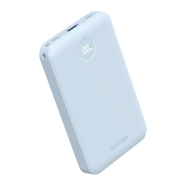 厚さ約16mmの手のひらサイズで、持ち運びに便利なモバイルバッテリーです。大容量10000mAhで、外出先でも安心して充電できます。ポーチやポケットにもすっきり収まり、手軽に持ち運び可能です。LEDパネルでバッテリー残量を1%単位で確認しながら使用できます。