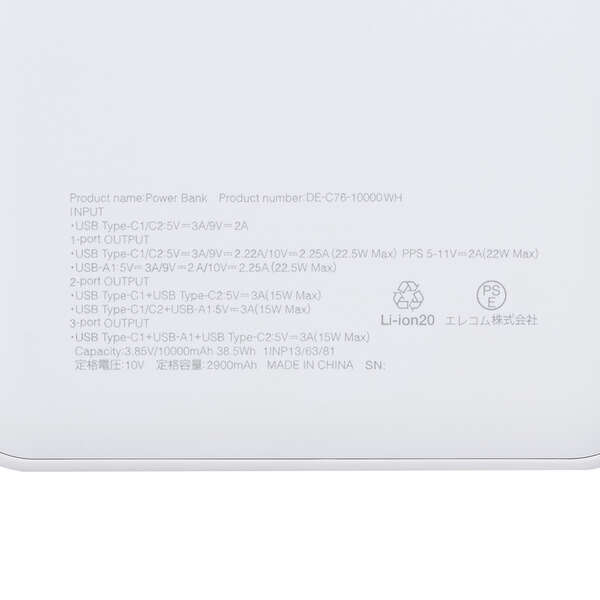 本製品(バッテリー容量10000mAh)で、1800mAhのスマートフォンを約3.3回、3000mAhのスマートフォンを約1.9回充電可能です。