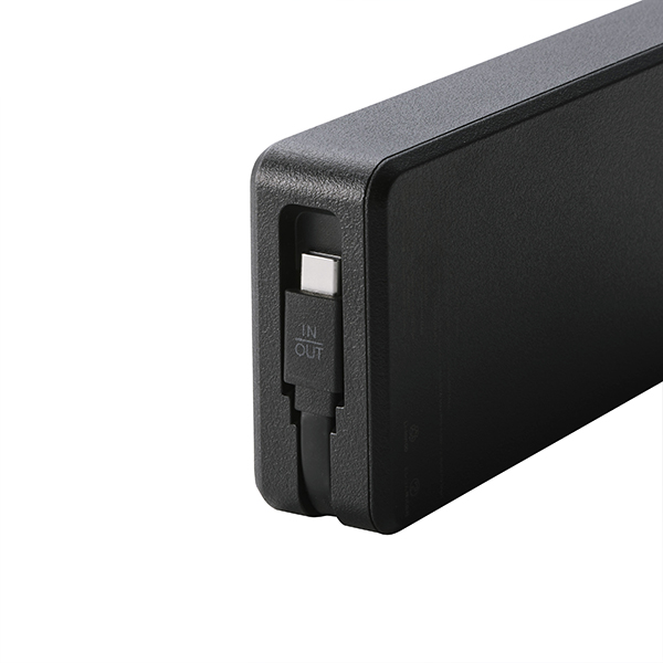 バッテリー・ケーブル一体型なので、ケーブルの持ち運びが不要。旅行や出張の際に活躍します。