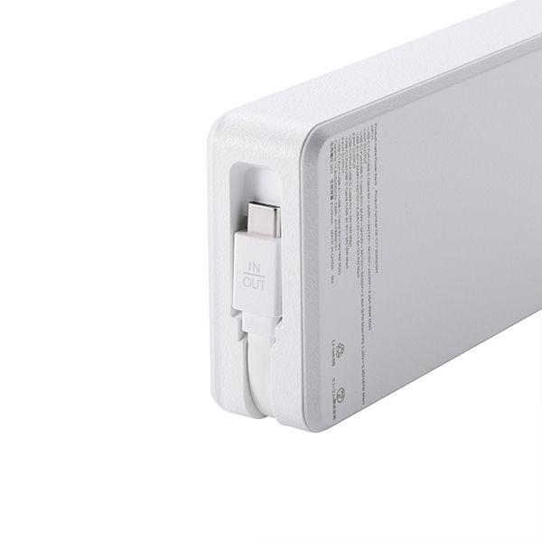 USB Type-C™ケーブル一体型・20000mAh容量のモバイルバッテリーです。