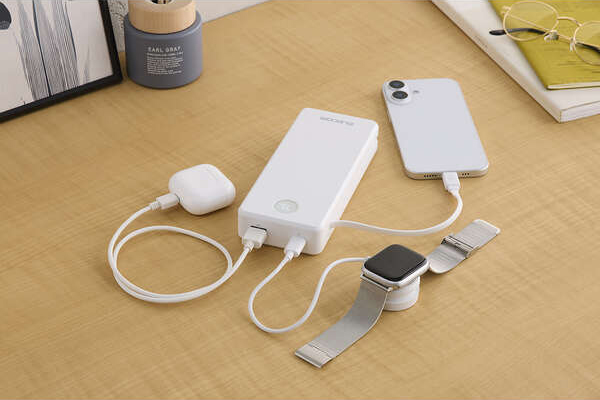 モバイルバッテリーへの充電は一体型USB Type-CケーブルまたはUSB Type-Cポートでできます。
