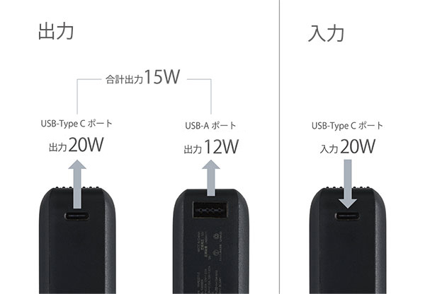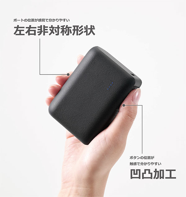 1日外出する際にも安心して使える10000mAhです。USB Type-Cポートからは最大20Wの出力が可能で、スマートフォンやタブレット、ワイヤレスイヤホンなどを充電できます。