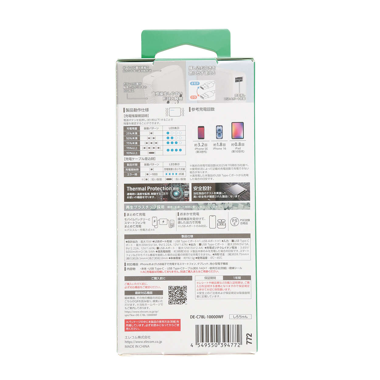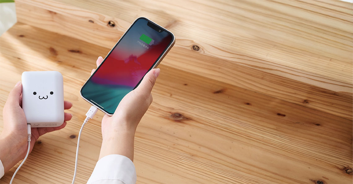 1日外出する際にも安心して使える10000mAhです。USB Type-Cポートからは最大20Wの出力が可能で、スマートフォンやタブレット、ワイヤレスイヤホンなどを充電できます。
