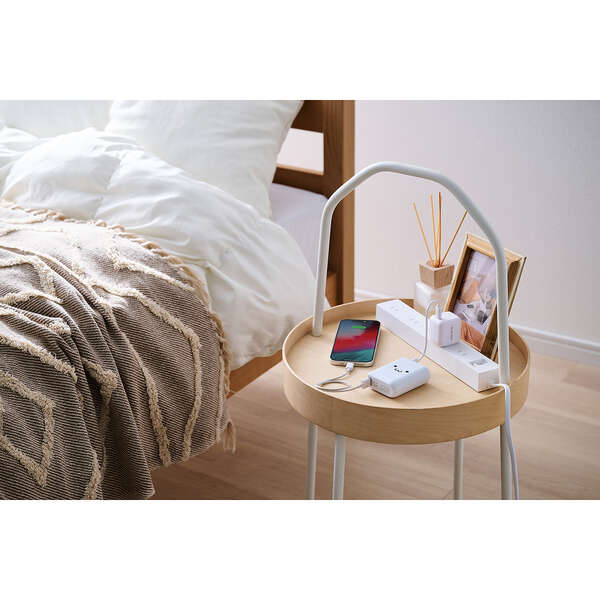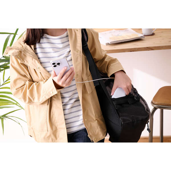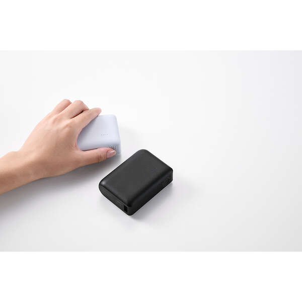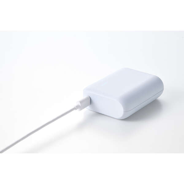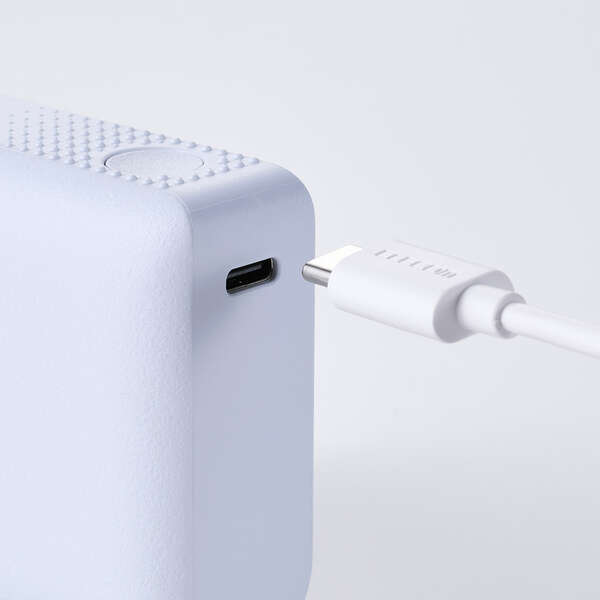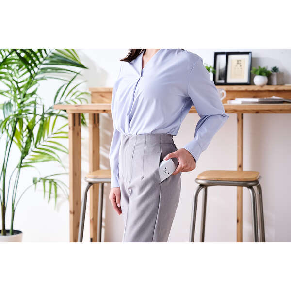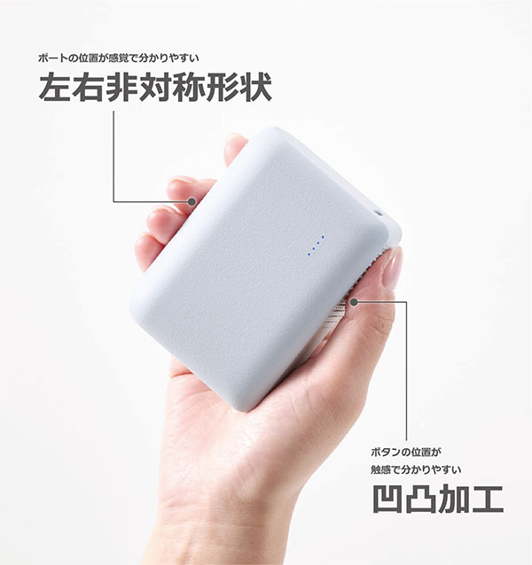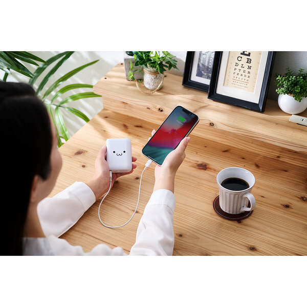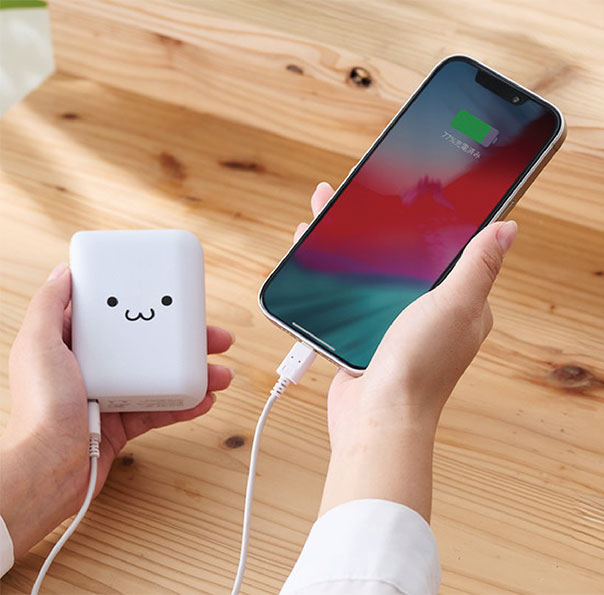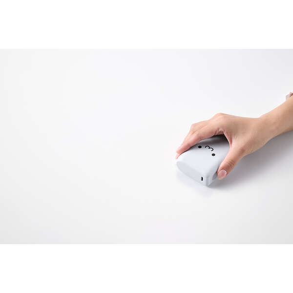 手で触れて、直感的に使えるモバイルバッテリーです。電池残量や充電状況を、本体が振動してお知らせ。ボタンやUSBポートの位置も触覚で分かる、インクルーシブデザインです。手元を見ずに触るだけで、どんな場面でもスムーズに操作できます。かわいいしろちゃんモデルです。