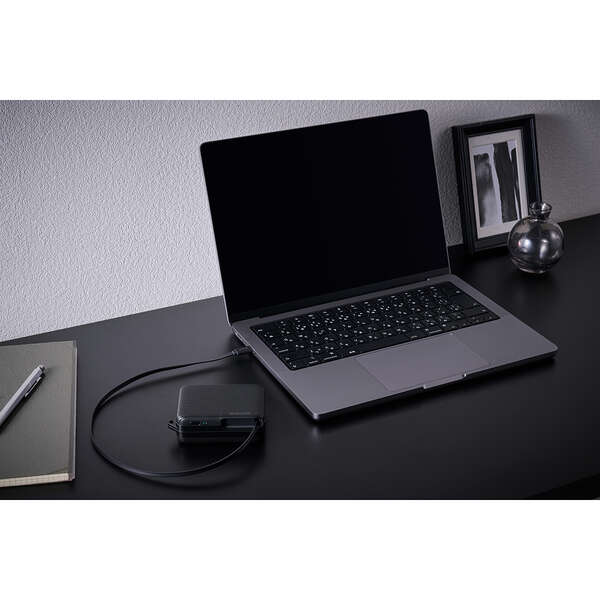 最大30Wの高出力でスマートフォンやタブレットを充電できるのはもちろん、MacBook Airなどのノートパソコンにも対応しているため、外出先で急にバッテリーが切れても安心です。