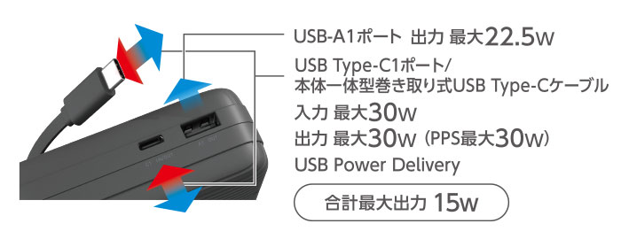 ※一体型のUSB Type-Cケーブル、またはUSB Type-Cポートの単独出力時に限ります。