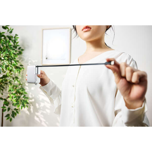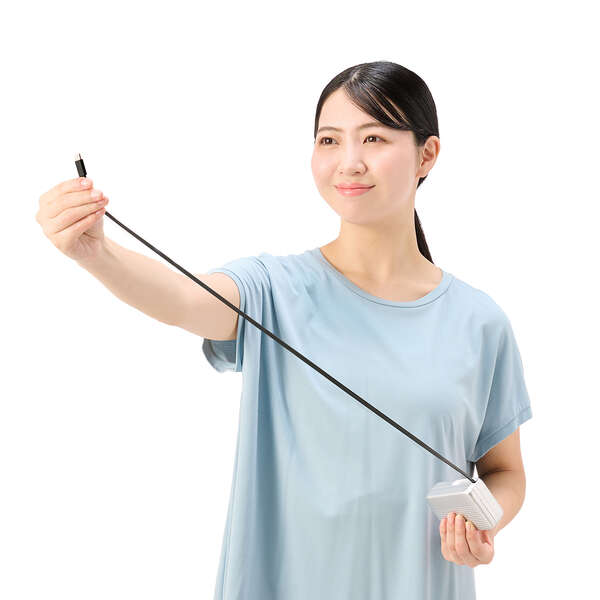 スッと伸ばして、くるっと収納!本体一体型の巻き取り式USB Type-C(TM)ケーブルを備えた、キャリーケースデザインのモバイルバッテリーです。最大出力30Wなので、スマートフォンやタブレットはもちろん、ノートパソコンの充電も可能です。容量10000mAhで外出先でも安心して充電できます。ケーブルを持ち忘れる心配がなく、必要な長さに調節して使用できます。