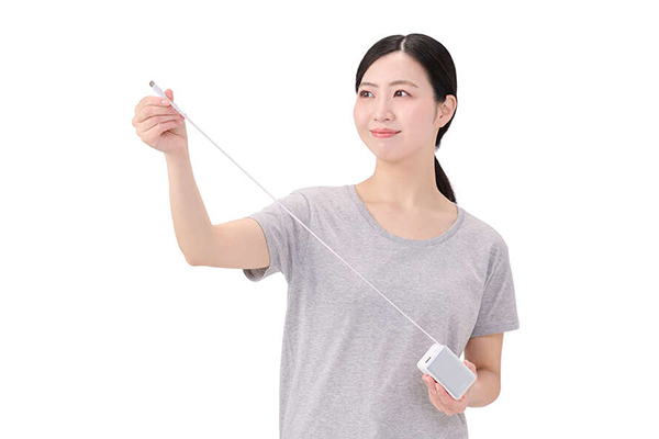 本体一体型ケーブルは巻き取り式のため、使用後はケーブルを巻き取って、すっきりと収納可能。ケーブルの長さは約62cmあり、必要な分だけ引き出して充電しながらスマートフォンを使用できます。