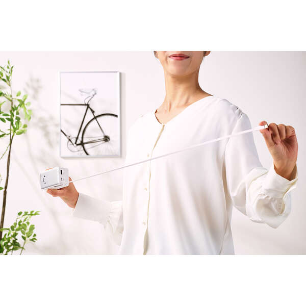本体一体型ケーブルは巻き取り式のため、使用後はケーブルを巻き取って、すっきりと収納可能。ケーブルの長さは約62cmあり、必要な分だけ引き出して充電しながらスマートフォンを使用できます。