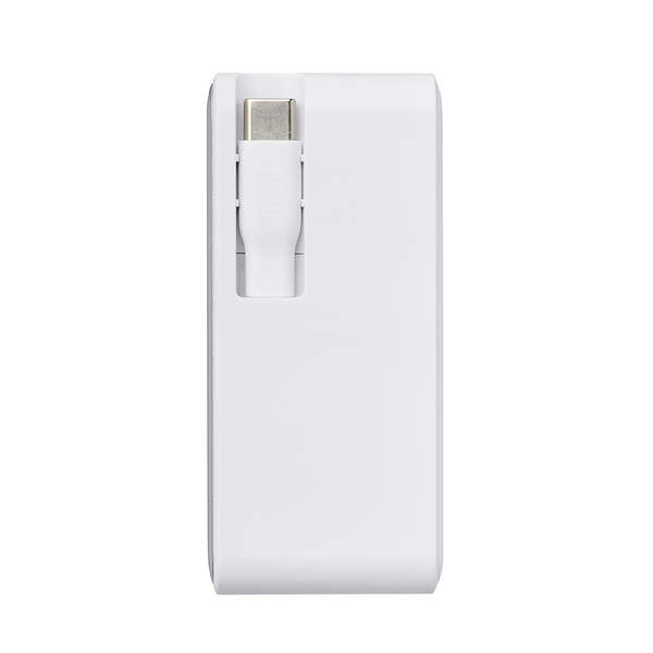 本体一体型の巻き取り式USB Type-C™ケーブルを備えた、容量10000mAhのモバイルバッテリーです。