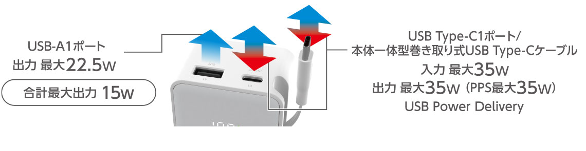 ※一体型のUSB Type-Cケーブル、またはUSB Type-Cポートの単独出力時に限ります。