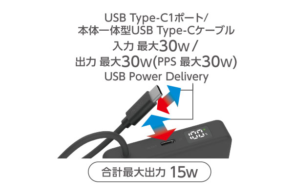 1ポート/1ケーブルの同時出力時は、合計最大15Wを分配して充電を行います。