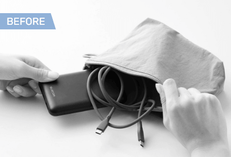 ケーブルとバッテリーをそれぞれ持ち運ぶと、ケーブルの絡まりの原因に。