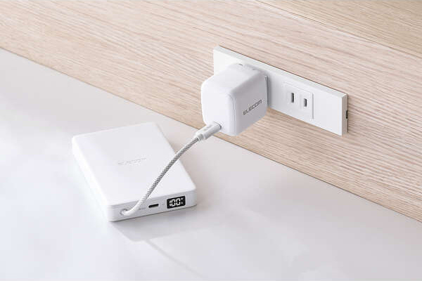 AC充電器のポート不足を解消。パススルー充電に対応しているため、バッテリー本体の電池を介さずにスマートフォンへ直接給電でき、電池の劣化を抑えられます。