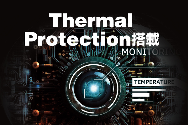 Thermal Protectionを搭載し、通電時に温度を監視することで、お使いの機器を守ります。