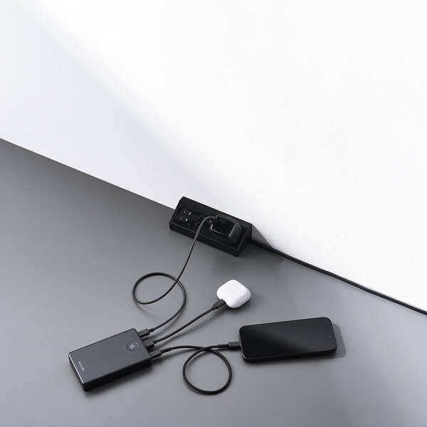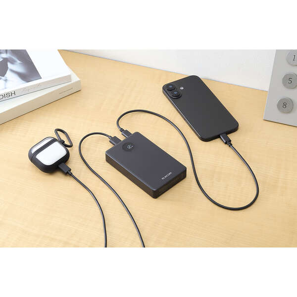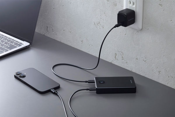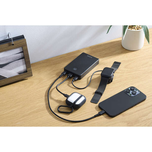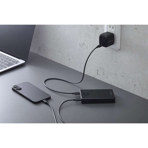 AC充電器のポート不足を解消。パススルー充電に対応しているため、バッテリー本体の電池を介さずにスマートフォンへ直接給電でき、電池の劣化を抑えられます。