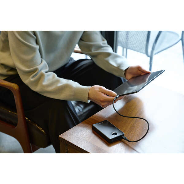 半固体リチウムイオン電池を採用した次世代モバイルバッテリーです。猛暑や極寒の環境でも使用でき、発火しにくい高い安全性と約2000サイクルの長寿命、優れた携帯性を実現。どこへでも持ち運べて、安心して使えます。さらに、バッテリー残量はLEDパネルに1%刻みで表示されるので、必要なタイミングで効率よく充電できます。
