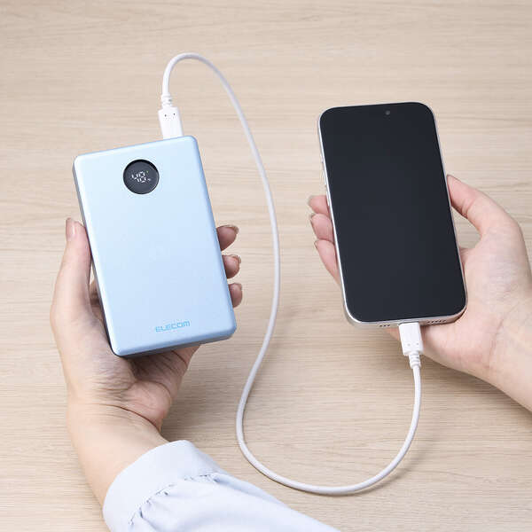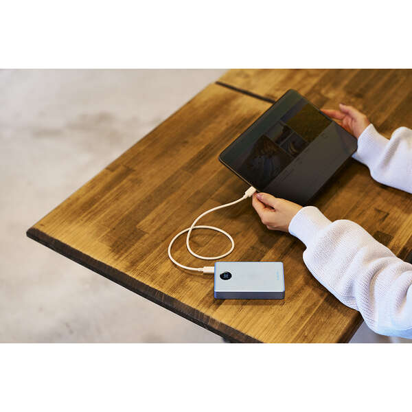 LEDパネルでバッテリー残量を1%単位で確認しながら使えます。事前にモバイルバッテリーを充電する際などに便利です。