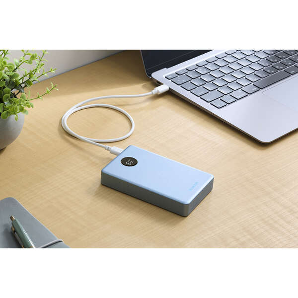 半固体リチウムイオン電池を採用した次世代モバイルバッテリーです。猛暑や極寒の環境でも使用でき、発火しにくい高い安全性と約2000サイクルの長寿命、優れた携帯性を実現。どこへでも持ち運べて、安心して使えます。さらに、バッテリー残量はLEDパネルに1%刻みで表示されるので、必要なタイミングで効率よく充電できます。