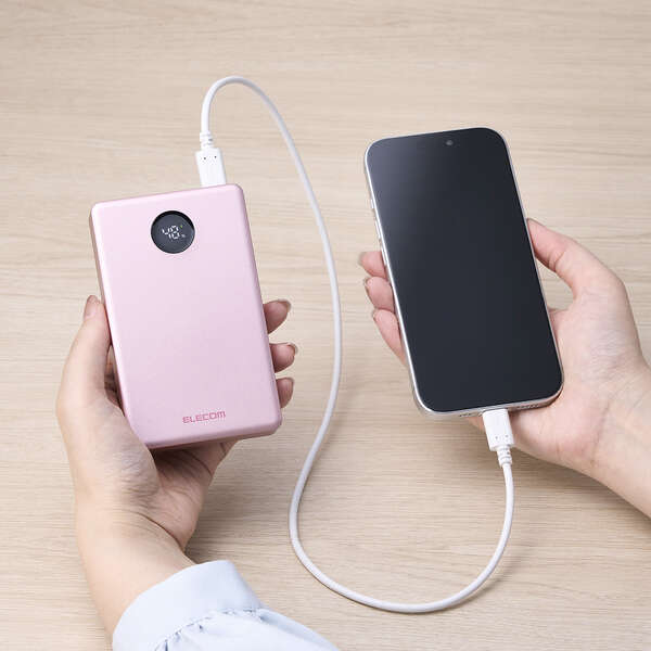 LEDパネルでバッテリー残量を1%単位で確認しながら使えます。事前にモバイルバッテリーを充電する際などに便利です。