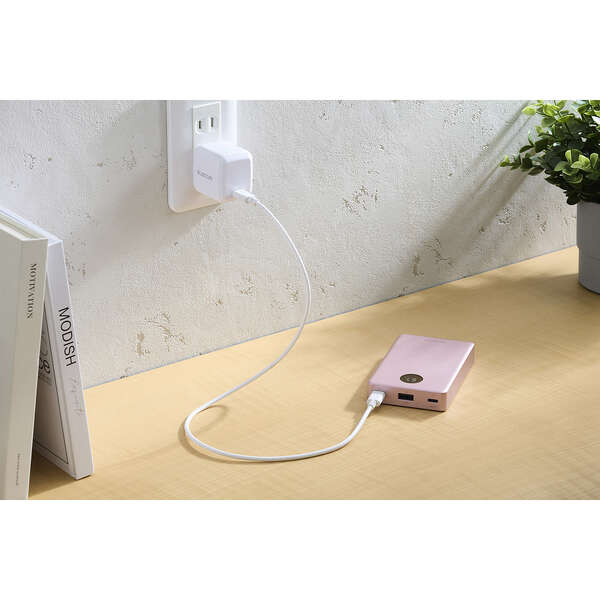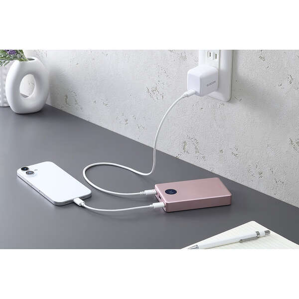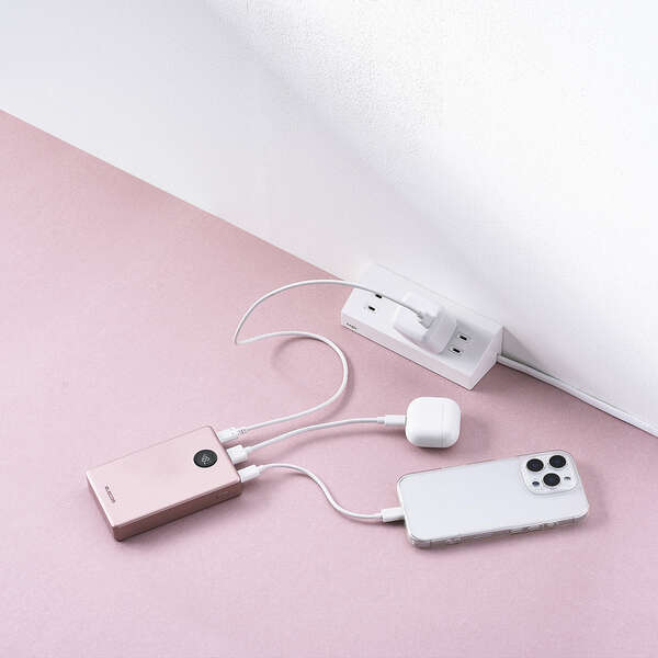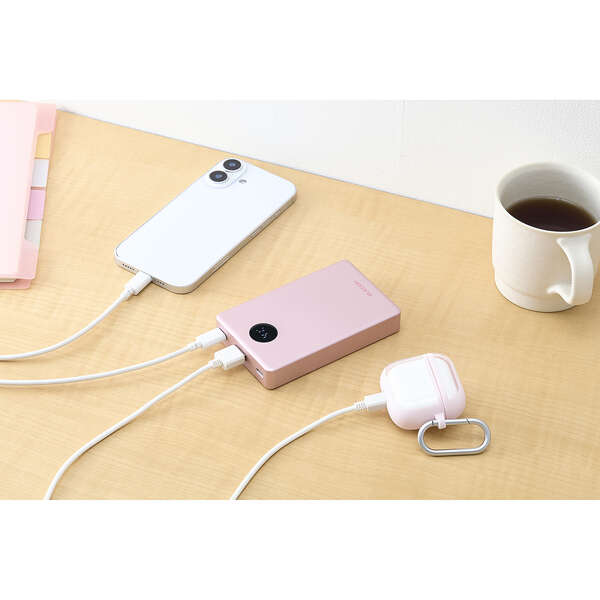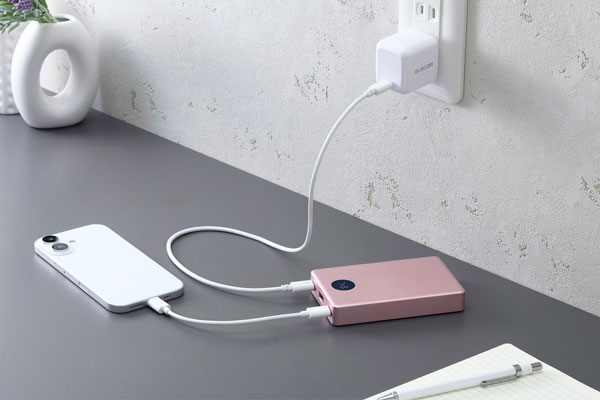 AC充電器のポート不足を解消。パススルー充電に対応しているため、バッテリー本体の電池を介さずにスマートフォンへ直接給電でき、電池の劣化を抑えられます。