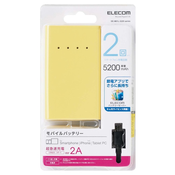 スマートフォンを約2回(※)充電できる!2ポート搭載・合計2A出力可能な高出力タイプのスマートフォン用モバイルバッテリー。※満充電をした本製品を用い、バッテリー容量が約1400mAhのスマートフォンを充電する際の目安回数です。