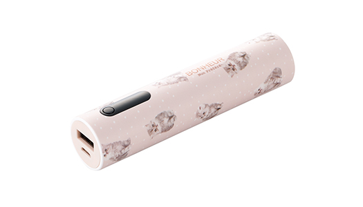 「毎日使うものだから可愛くそばに。充電時間も幸せなひとときに。」をコンセプトにしたモバイルバッテリーです。かわいいデザインプリントが、充電時間も幸せな時間にします。