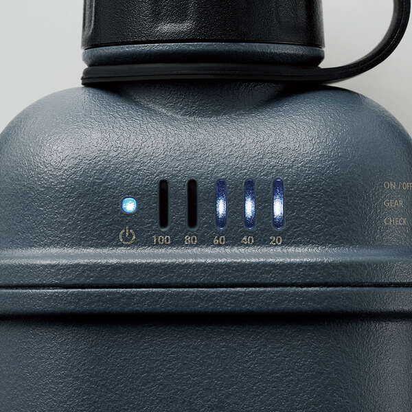 電池残量は5段階のLEDランプ点灯で確認可能です。