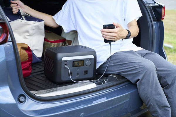 電源のない場所でも家電製品の使用やデバイスの充電などを可能にする、AC・DC・USB出力対応の512Wh ポータブル電源です。