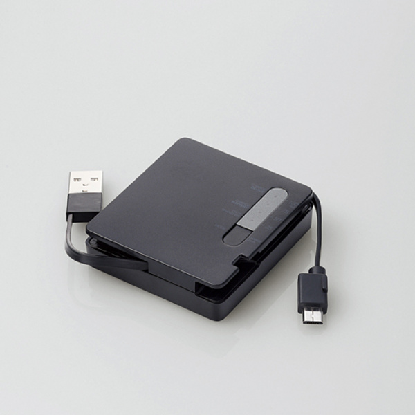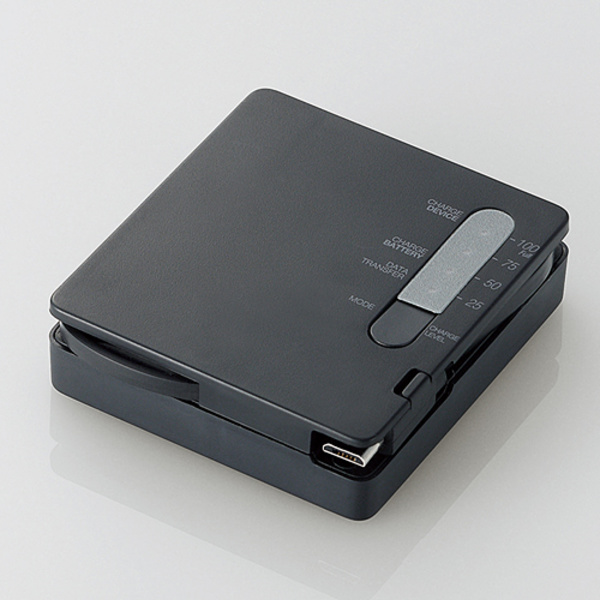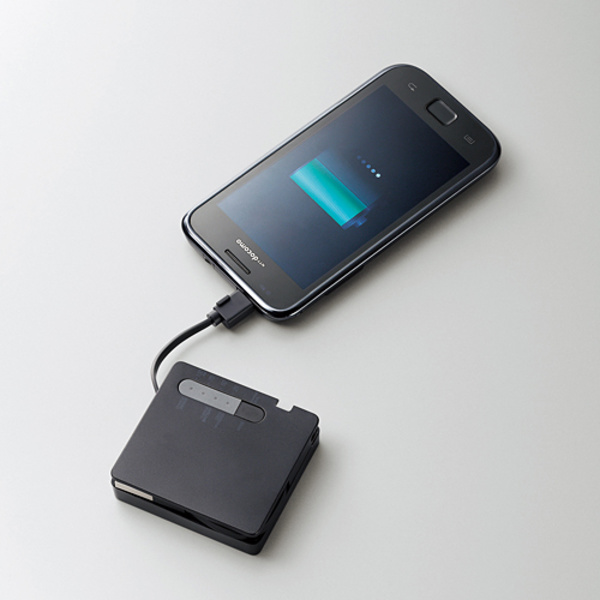 ケーブル一体型なので外出先でもすぐに使えてスマートフォンを充電できる!データ転送もできる、充電式リチウムイオン電池搭載のモバイルチャージャー。