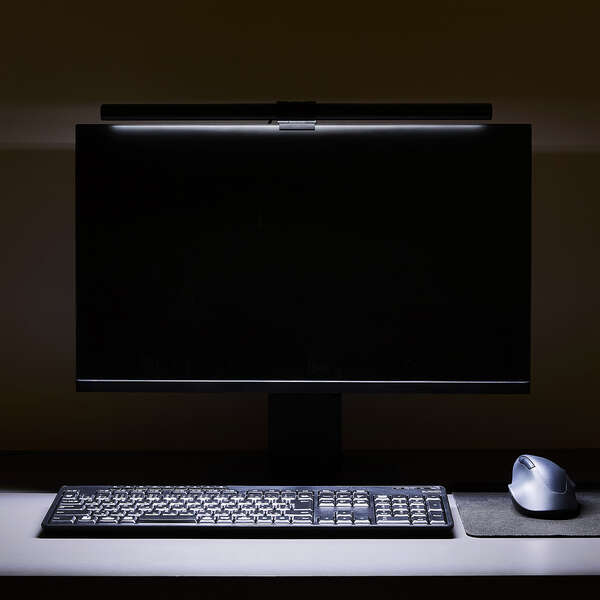 暗い部屋でも快適に作業できる!モニターに引っ掛けるだけで、手元を明るく照らすLEDモニターライトです。モニターへの反射を抑え、光が直接目に入りにくい設計で目の負担を軽減。高演色の自然な明かりで、明るさ10段階・色温度6段階の調節が可能です。